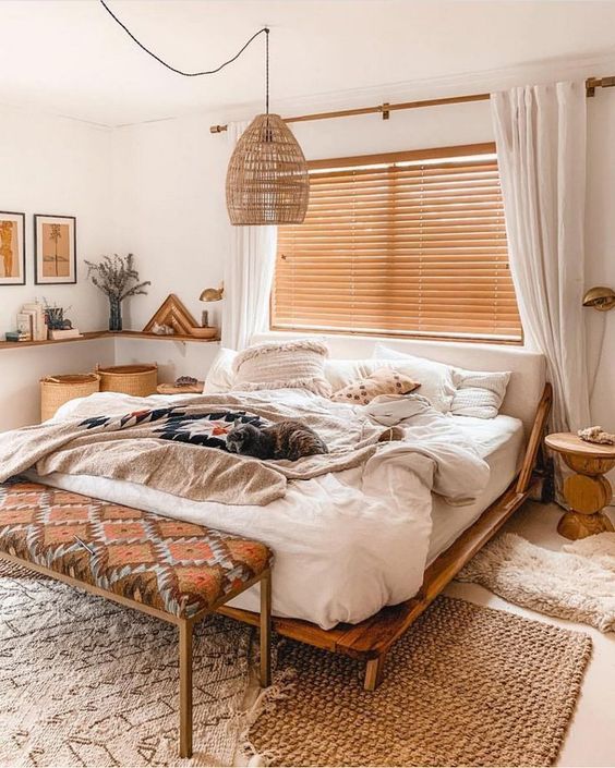 Wood is one of the elements present in the Boho style. With this, wood can be used to bring a warm and so cozy feel into a Boho-style bedroom.