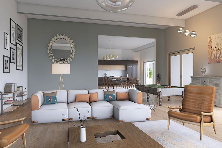 By installing a mirror in the center of the living room, your room looks neater and more attractive with this design. Therefore, the mirror is the trick most often used to make a living room appear spacious than it is. In this picture, you can see a beautiful round mirror installed in the center of the living room. Then, it makes the mirror in the living room look more attractive on the wall. Then there is no impression of being dense and cramped.