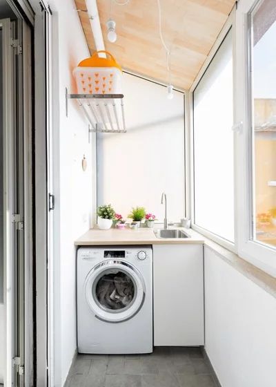 To make the small laundry room look bright naturally, presenting the natural lighting is so important. To make this room does not feel cramped and stuffy, try to make natural lighting as the main lighting for this room.