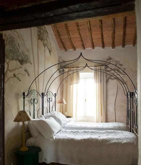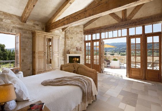 It might look like a farmhouse bedroom design. However, the wood beam ceiling is also the hallmark of an Italian-style bedroom.