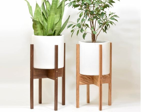 15 Modern Wood Leg Standing Planter Decor Ideas