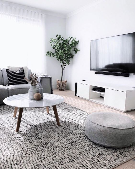 There are several additional decoration ideas to create a modern minimalist monochrome living room to make it look cozy and fabulous: