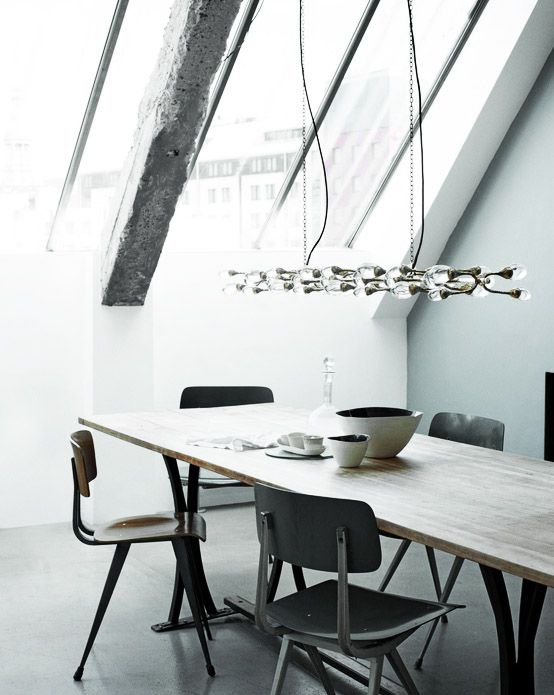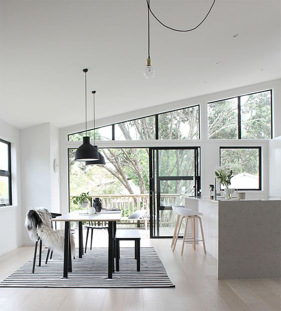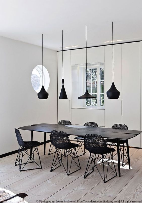 5. Great Simple Monochrome Dining Room with Minimalist Pendant Lamp