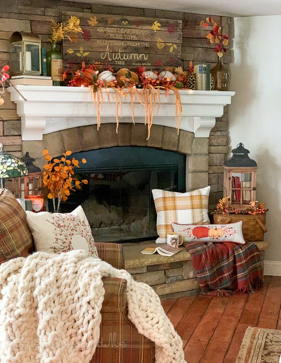 If there is an empty space near the fireplace, using this space is the right idea to create a cozy spot at home. Adding a few cushions and a thick blanket creates a warm and cozy atmosphere. You can also read books and enjoy a cup of hot chocolate here. In this way, your winter season will be very interesting and memorable.