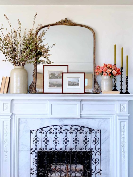 In using a mirror, of course, you have to hang the mirror on the wall. However, if you have a fireplace in your house, you can put a mirror on top of the fireplace. More simple, right? Besides that, the fireplace will also look prettier. The addition of a small picture and some flowers or plants make it look prettier.