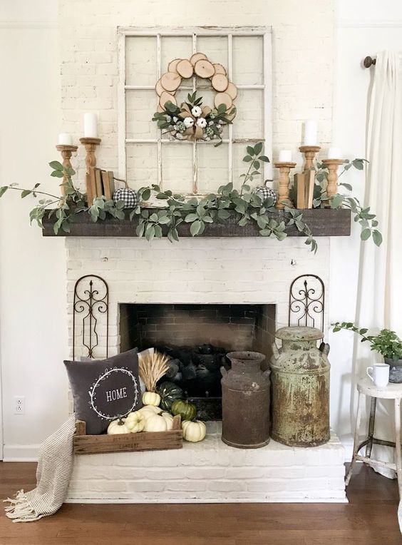 Putting greenery on top of the fireplace becomes an attractive decoration. Adding a few candles is also an additional decoration so that the fireplace looks calm