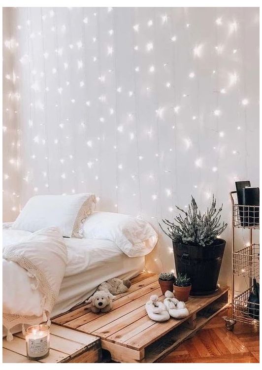 Next up is the string light. This one lamp is indeed very popular and is widely used by people to decorate their bedrooms. Choosing a string light with warm lighting will also make the atmosphere in the bedroom feel warm and soothing. So, using the string light as a bedroom decoration not only make the bedroom look beautiful but also make the bedroom feel cozy.