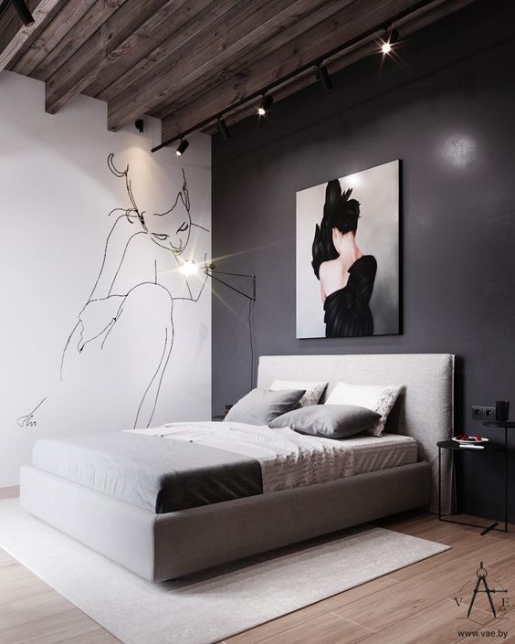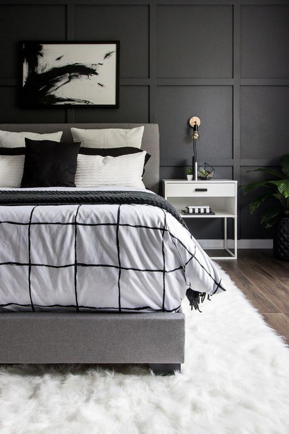 Walls have a big influence on the appearance of the room. So, to make the room look attractive, you can play on the wall by giving interesting touches. You can create textured walls. Wood walls painted black will make the monochrome bedroom look attractive and minimalist.