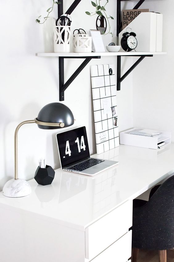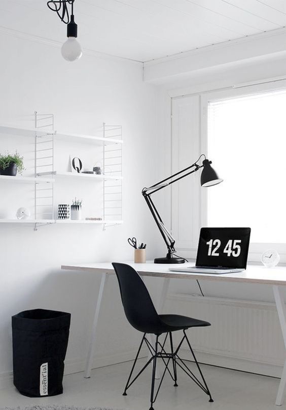 The white workdesk with a simple design makes the monochrome bedroom look more minimalist. The white color on the workdesk makes the bedroom look brighter, especially if it is placed next to the window. The sunlight hitting the work desk will reflect and make the bedroom appear brighter. Besides that, the work desk beside the window can also make you feel comfortable when working or studying there. You can see the scenery outside the house to make your mind refreshed.