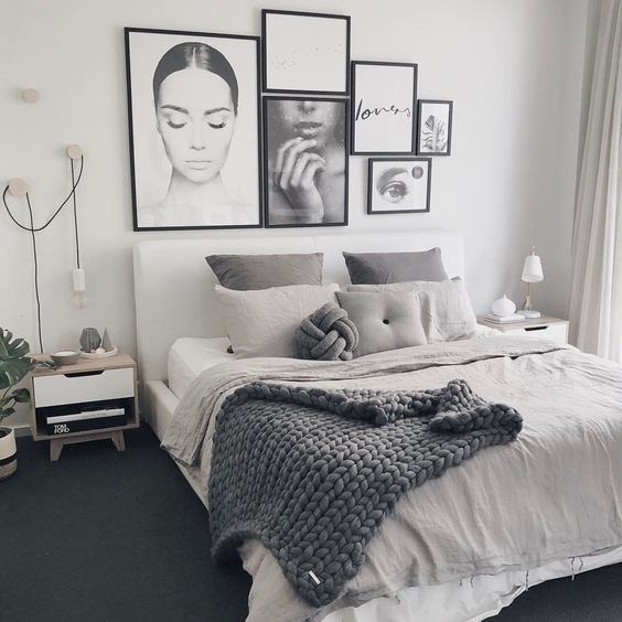 Aesthetic picture and painting is the right idea to make a bedroom look attractive and aesthetic. B&W picture is the right decoration for a monochrome bedroom to make it look aesthetic.