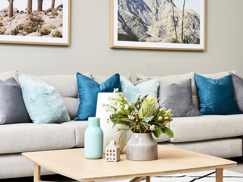 You do not need a large table for beautifying your room. For beautifying the empty side of the room you can use a small circular table. Place it in front of the sofa. It will be very helpful. You can put a cup of tea or something else on the table.