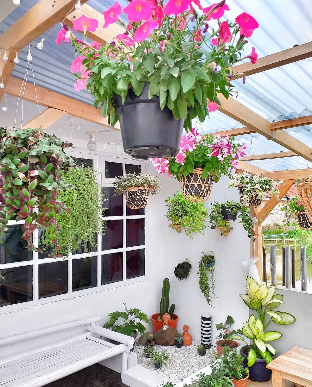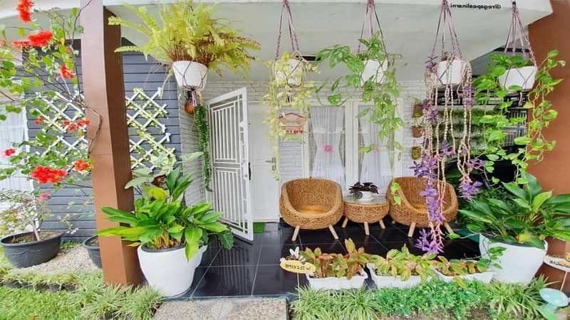 Having a limited front yard does not become an obstacle to creating the flower garden as you want, and don’t let your hobby be buried and not channeled. The solution, you can place flowers by hanging them on the terrace.