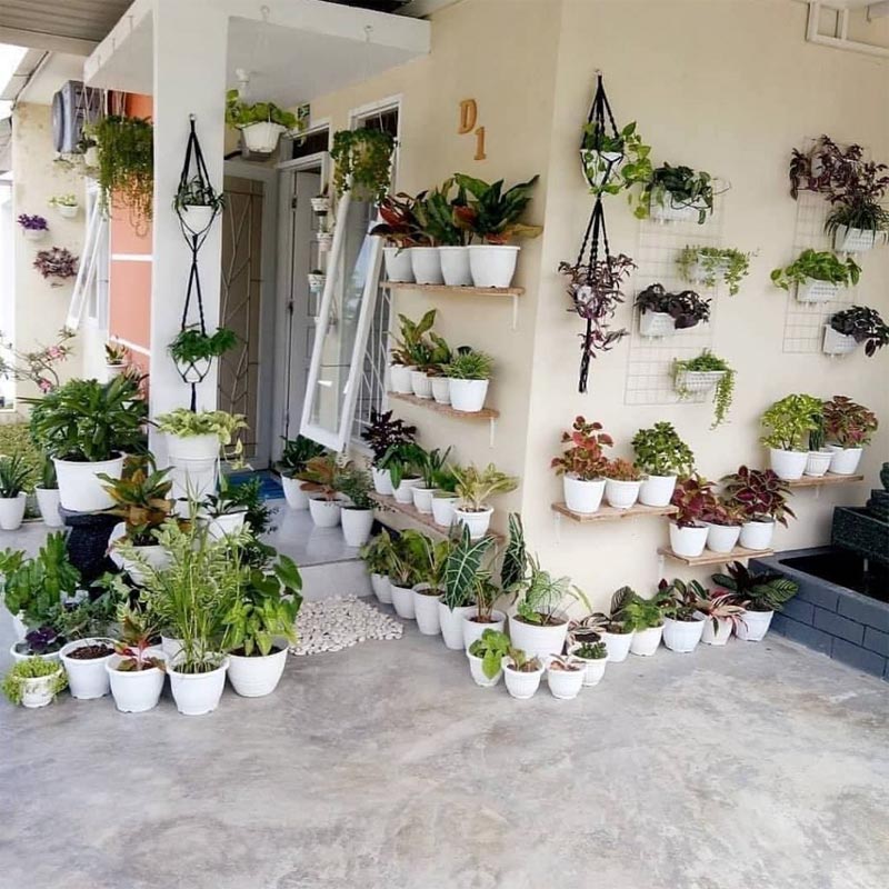 Placing flower pots on the shelves takes up more space in the front yard, and the yard will be narrow. But for those who have hobbies and are happy with flowers, of course, this is not a problem because, for them, the flower plants are part of their life. Then they will feel satisfied if they always see their favorite flower in front of their eyes.