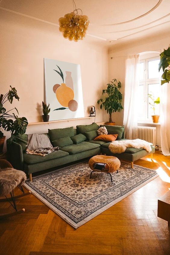 Big plants are the right decor for a simple living room. The big plants in the corner of the room make it look calm and beautiful.
