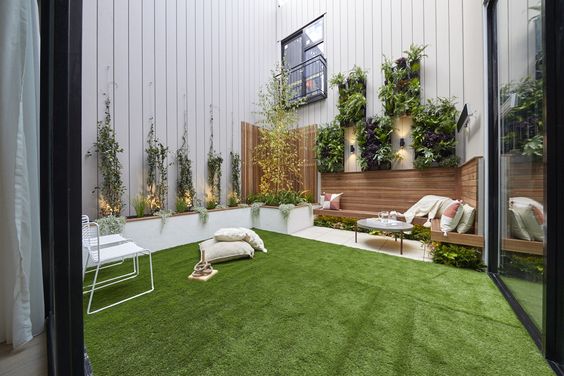 The wall is indeed the right spot to decorate. This is because the walls have a considerable influence on the appearance of a room. Therefore, making a wall in a small textured garden will make this place look more attractive.