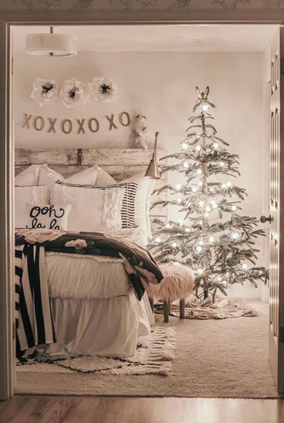 When decorating a bedroom with a Christmas tree, make sure you do not leave the Christmas tree with a plain look without decorations. Try to add some or simple decorations to make it look more attractive.