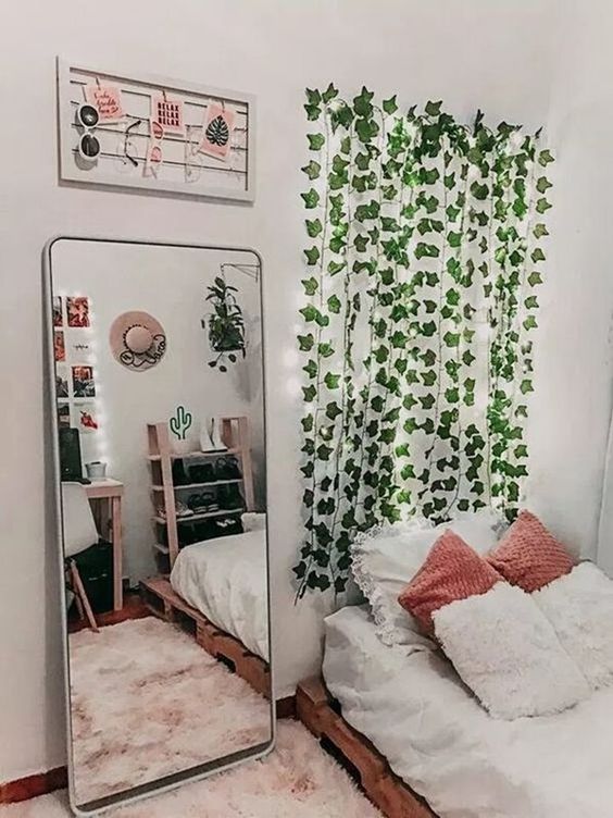 The presence of string lights on synthetic vines makes the green color of this item look more alive. And of course, this is very influential on the appearance of the bedroom itself. Besides the bedroom looks bright, the bedroom will also feel more comfortable.