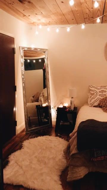 It’s also a great idea to put string lights near the mirror. The light from the string light will reflect on the mirror and make the bedroom look brighter. This light will look very beautiful at night.
