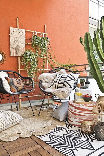 Comfortable Terrace with Warm Nuances from Rattan Items