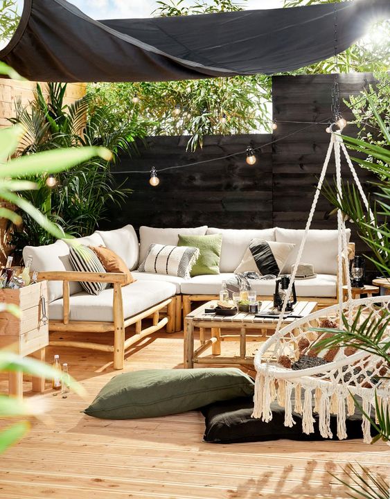To make the terrace a place to relax, the sofa is indeed the most appropriate item to use. The soft and warm texture of the sofa makes you feel comfortable for a long time there. With this, the terrace will be a cozy spot at your home. To make the terrace look bright, use bright colors for the sofa, such as white, blue, and others. Adding some cushion also the best idea to make the terrace in the backyard look beautiful.
