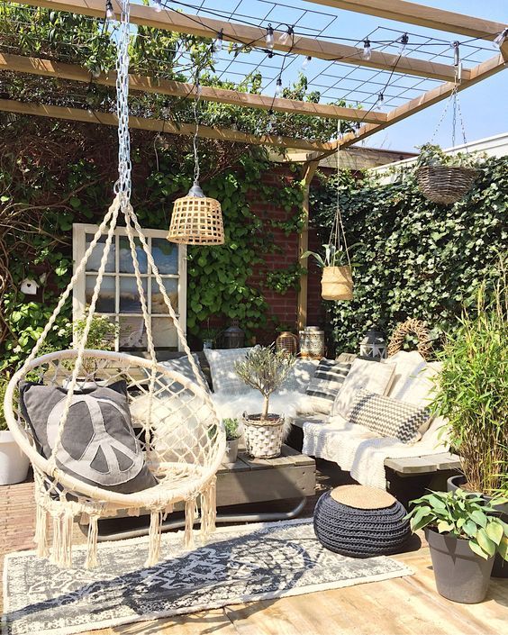 To make the terrace cozier, add the hanging chair is the best idea. Sitting on the hanging chair will be more comfortable than sitting on the sofa. You will feel enjoy when reading the book on it.