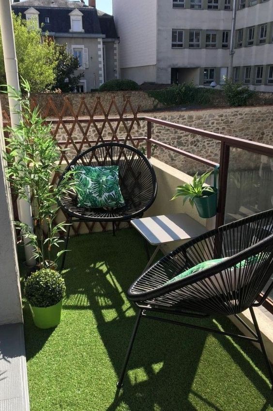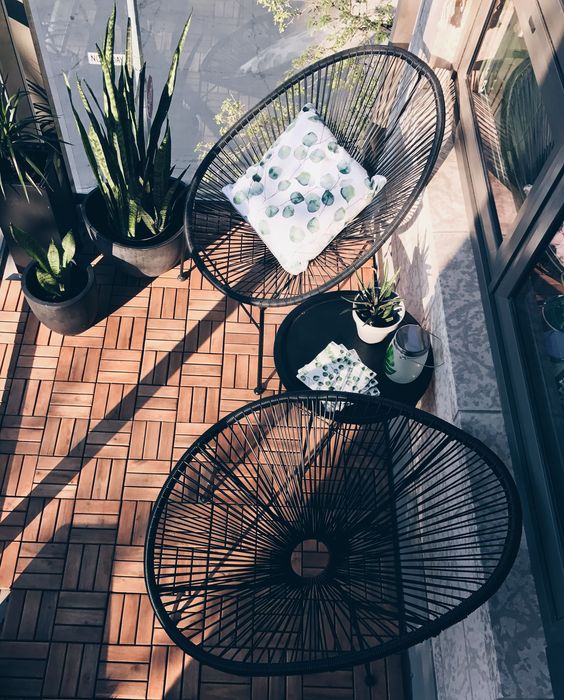 To enjoy the atmosphere on the terrace, you certainly will need a place to relax. With this, the chair becomes the right item to use. Adding a circle chair to the terrace is a great idea to makes the small terrace look so pretty and simple. Black is the right color to give a calm nuance. In addition, black is a natural color that gives a simple look to a small terrace.