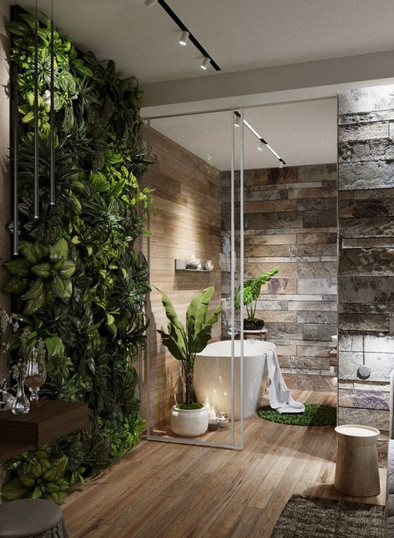 Wall-plants is a great inspiration and idea that can be your reference. The wall-plants will make the bathroom looks green and beautiful without taking up space in this room. In this way, the bathroom will look beautiful and comfortable.