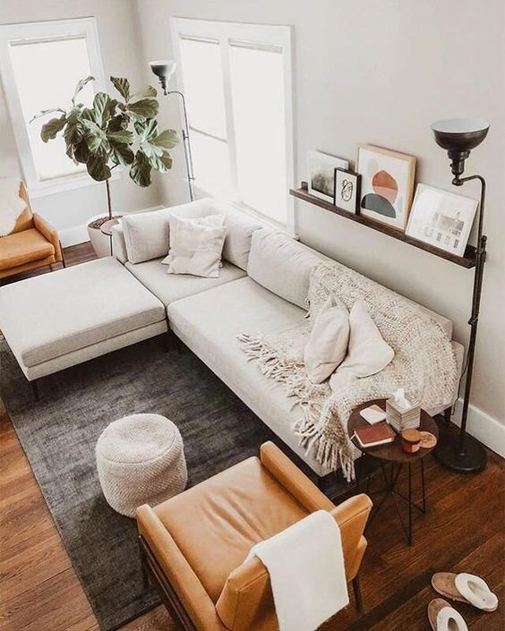 In creating a simple and minimalist appearance to the room, natural colors are the right choices.