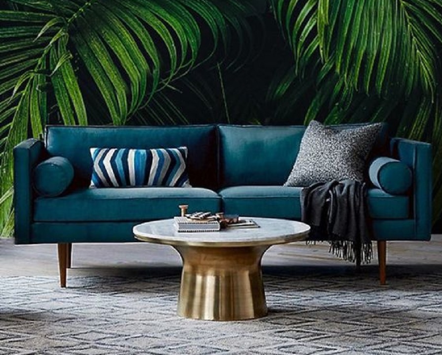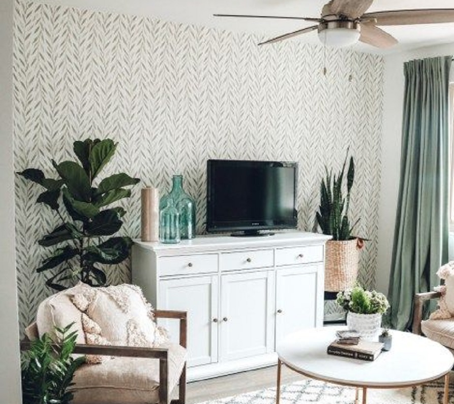 The living room must be decorated as beautifully as possible so that you and your family feel at home and make your guests pleasant. In this picture, we give some examples of leaf-patterned wallpaper. Then it is equipped with a sofa and decorated with light colors on the carpet. With this design, the appearance of your living room will feel comfortable.