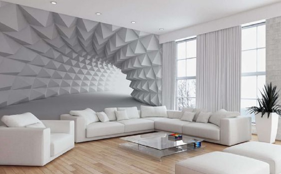 The living room wall design with this three-dimensional wallpaper motif makes you feel like you are in a beautiful tunnel. This design looks more beautiful and deserves to be in your living room and this design takes us into the past.
