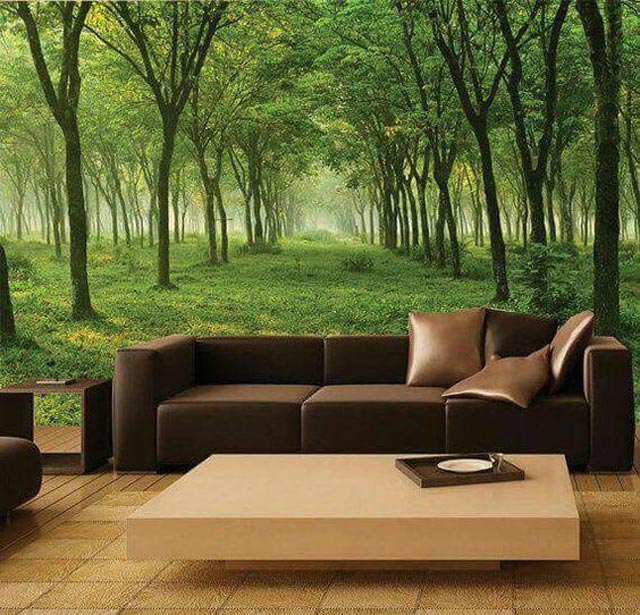 Wallpaper is usually sold per meter and can sell include installation. Therefore, if you like the scenery or plants, you can buy them at a home decor store and store that sells wallpaper. Then you install the wallpaper according to your plan. Then, the wallpaper motif according to your taste. Happy decorating. Then, enjoy the beauty of your living room.