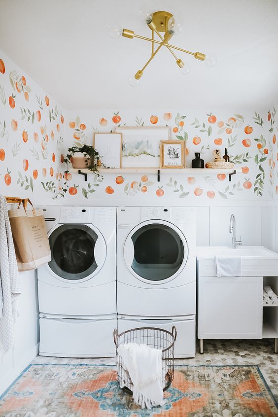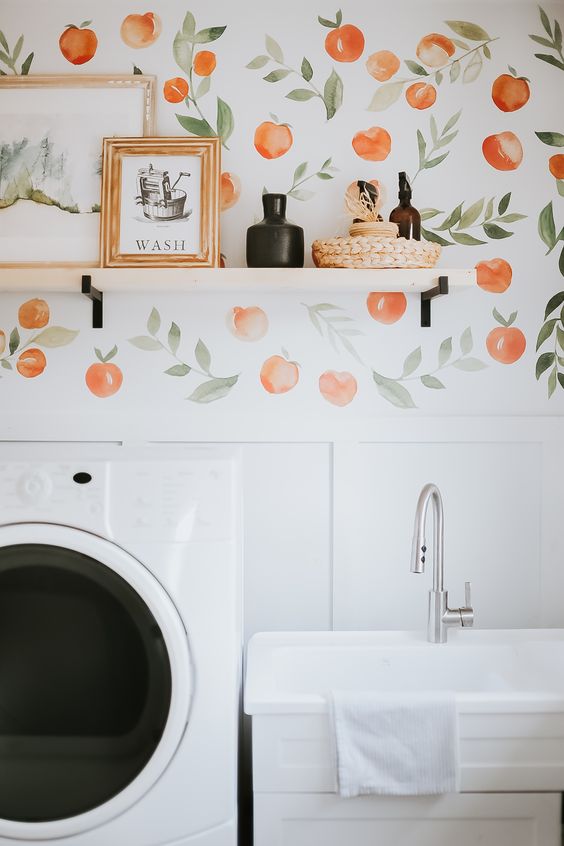 The next color that can be used for a bathroom is peach. Peach and white are the perfect combinations to bring a cheerful atmosphere to the bathroom. Providing wall decorations by drawing peaches on the walls makes the bathroom look cute and simple. A little green is a sweetener in this room.