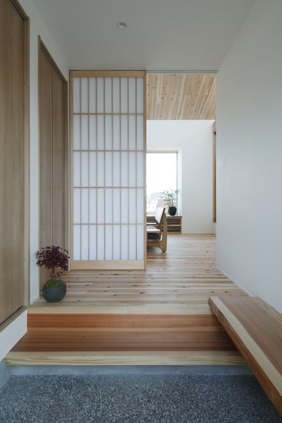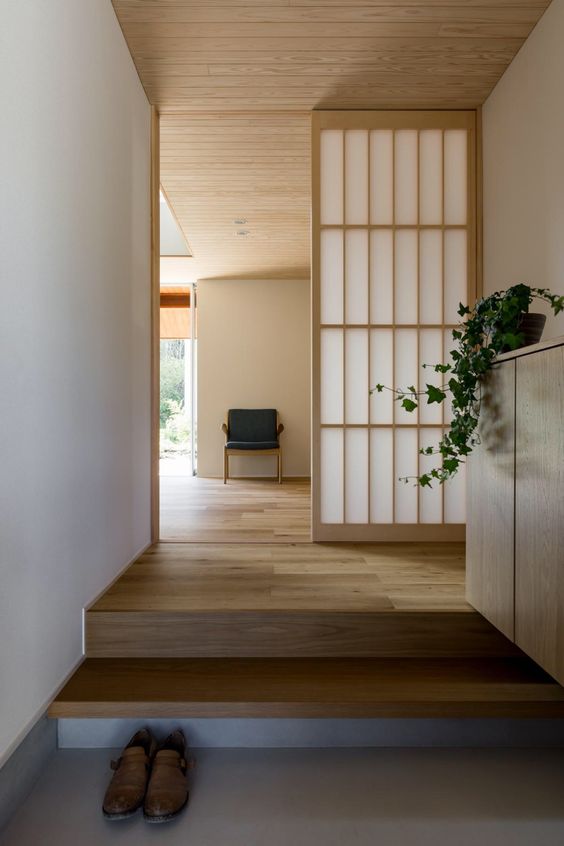 In Japanese home design, there is usually a transitional space between leisure and deep which is often referred to as Genkan. Genkan is made to welcome guests and to take off sandals or shoes. Usually, there are shoe racks and a variety of other displays such as jars or ikebana (traditional Japanese flower arrangements) in the genkan.