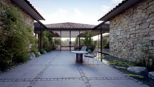 In Japanese Design, water is one of the most powerful elements. Therefore, it is not surprising that there is a fish pond in the garden inside the house. The Japanese people make water as a natural element that can provide calm to the house. The sound of the water in the fish pond is very good for the soul.