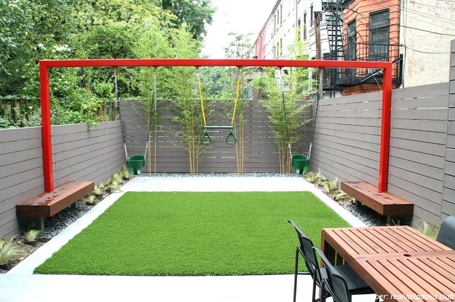 If you have a happy family and small children, Of course, this design is suitable for next to your house. You can turn your side garden into a fun children’s playground for your child. For that, you can add games such as swings and slides to make them feel happy playing.