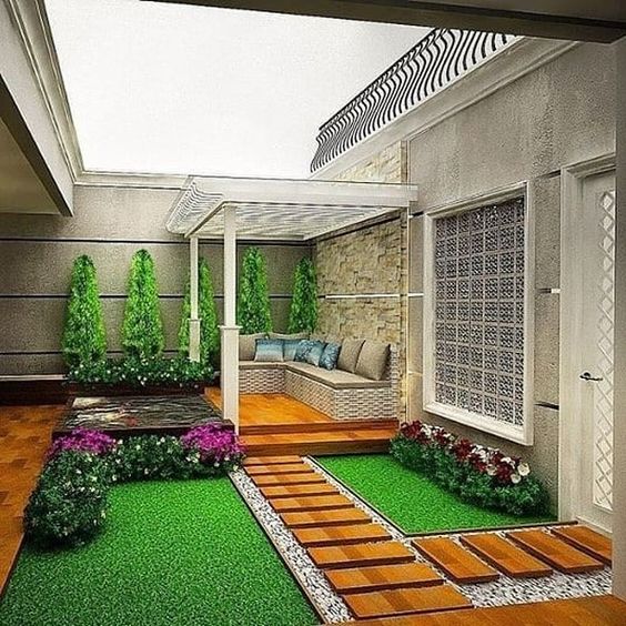 The open garden concept originated from the public open garden, and many applied in the big houses. This garden also can provide a comfortable and calm atmosphere. Then, this open garden is a function as a stress reliever and tension.
