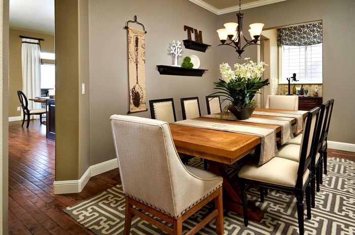 A beautiful dining room interior can increase your motivation for a pleasant meal. Therefore, to make this dining room look fabulous, you can decorate your dining room with some beautiful flowers on the table. With a design like this picture, the interior of your dining room will look comfortable and make you happy to eat together.