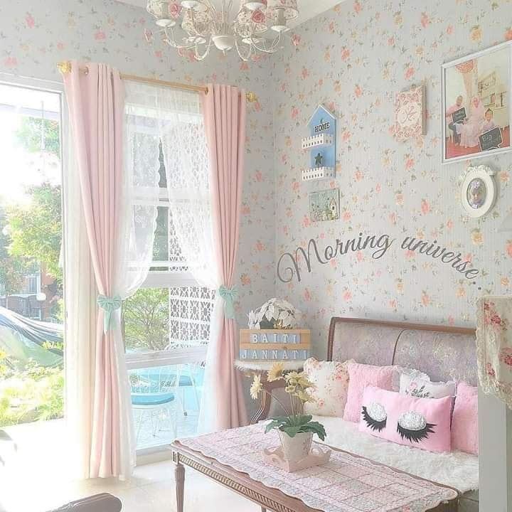 You can see the interior of this living room. The door of this house looks more beautiful with elegant and harmonious pink floral motif curtains. Therefore, the appearance of the living room becomes more attractive and fun. We hope you can design your living room like in this picture.