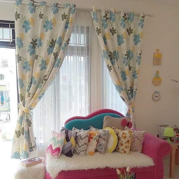 To make your living room look more attractive with curtains. The colorful floral motifs make your living room look more beautiful and sweet. Of course, you can use these curtains for your living room.