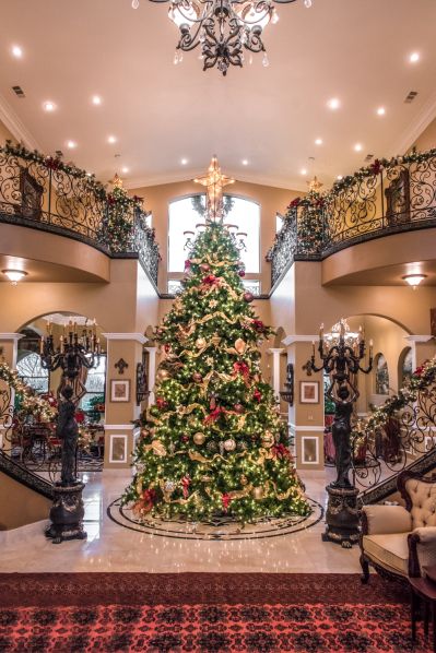 The large Christmas tree can be an option for decorating your entryway. So, when people enter your house, they will immediately be greeted with a beautiful large Christmas tree.