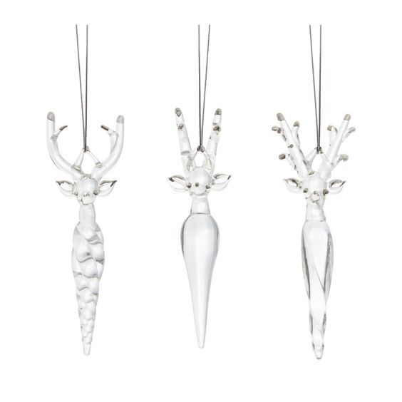 Icicle shaped glass also comes in natural forms, such as birds, deer, acorns, and so on.