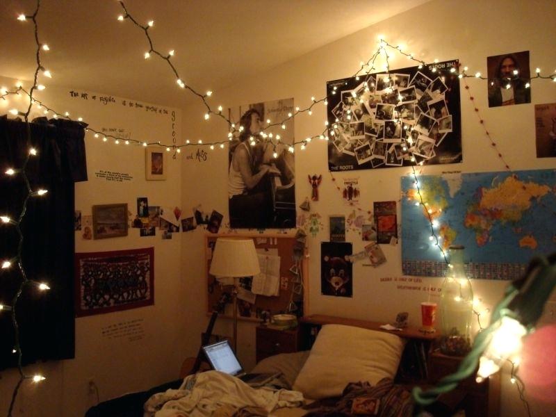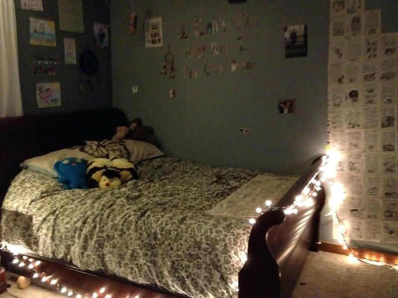 If you are a simple person and you do not want using a lot of Tumblr lamp, you can try the picture above. You only need to use a simple Tumblr lamp and hang it on the wall above your bed. In this way, you can still make your room feel cozy even though it is quite simple.