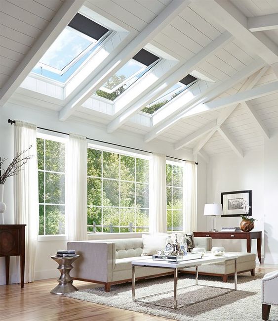 The beautiful blue sky will also appear clearly from the skylight window and make the room look much more attractive. Placing the sofa right under the skylight window is the most effective way to make the living room the coziest spot in the house.