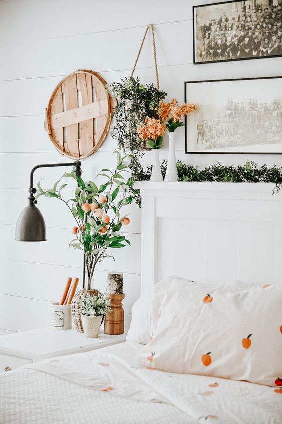 You can put a vase filled with flowers on the tableside. This will be of great help in bringing the spring vibes into the bedroom. Beautiful natural colors of flowers will make the bedroom feel fresh. Besides that, these flowers will also make the bedroom smell good.