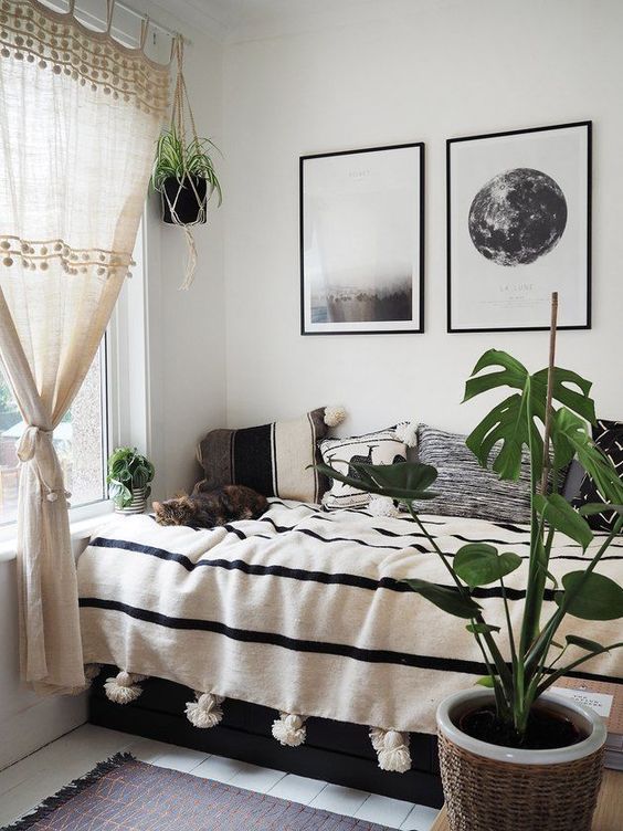 For those of you who make the bedroom a place to release stress, maybe you can add some plants to the bedroom. The green color of plants can make you feel more relaxed and calm.