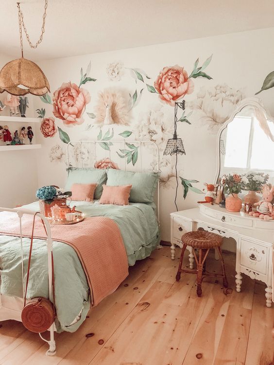 There are various kinds of wall murals to choose from. However, because welcoming spring is synonymous with flowers, try to choose a flower wall mural as a bedroom wall decoration. The flower wall mural will make the bedroom look colorful and make the atmosphere of this room feel more alive.