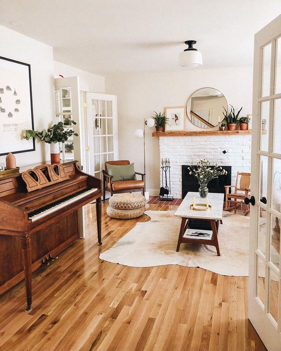 If usually the piano used is often black or white, but in order to bring a calming nuance to the living room, you can choose a piano made of wood and of course brown.