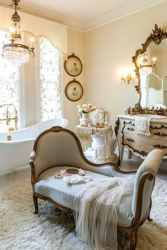 One of the characteristics of the vintage style is that there are carvings on the furniture used. These carvings look like a shabby chic style. In the bathroom, you can choose a bathtub with carved legs in a shabby chic style or a beautifully carved table.