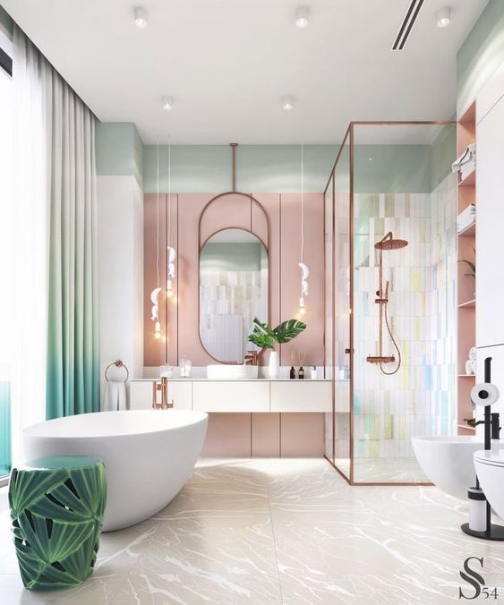 Want to have a modern bathroom that looks beautiful and attractive? Pink is one of the colors that can be used to create this bathroom.
