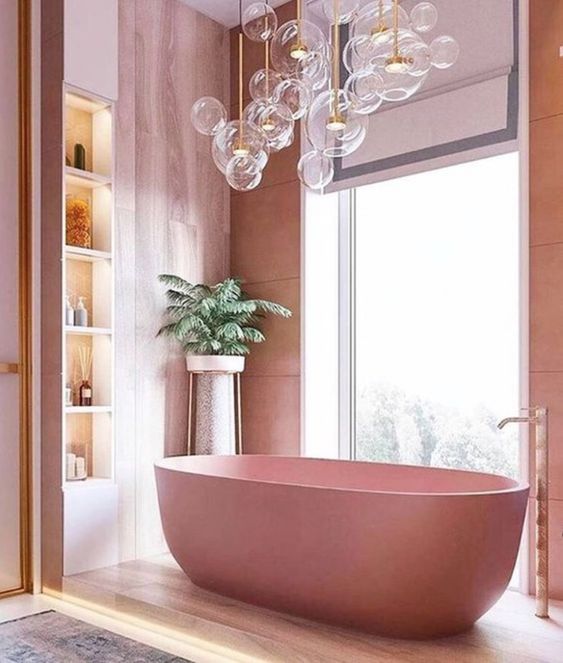 Nude Pink Bathtub Makes The Bathroom Look So Soft and Soothing